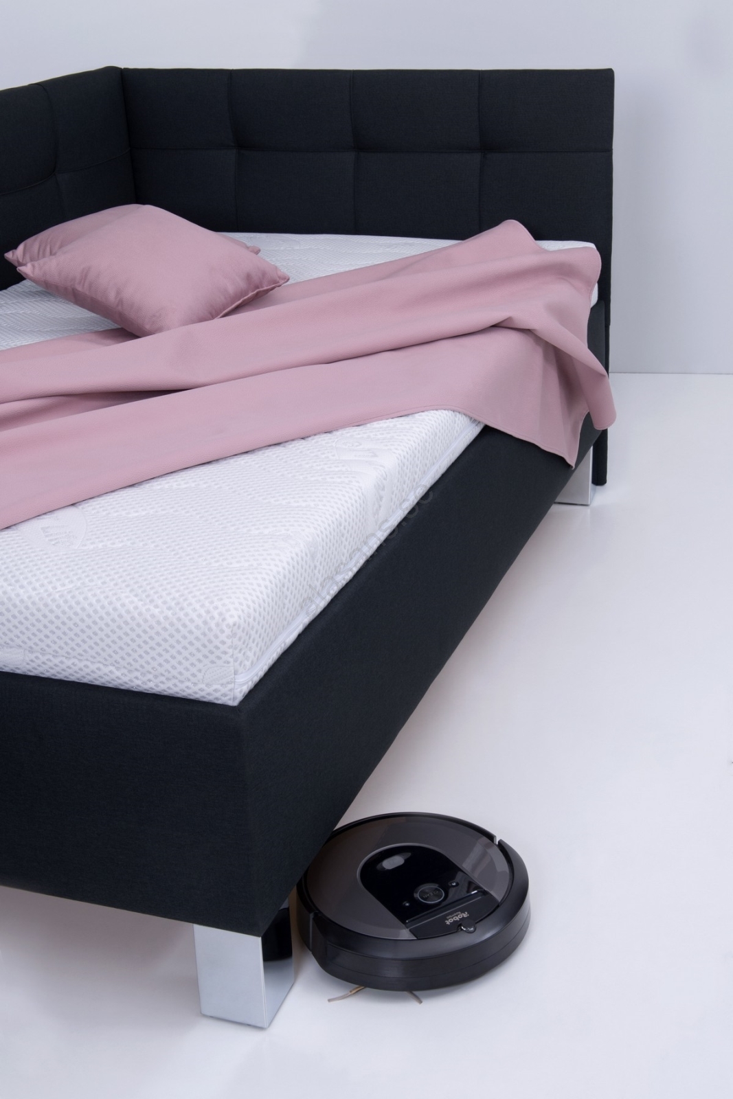 • Stabila och designade kromade ben, 15 cm höga, framhäver inte bara sängens moderna uttryck utan gör också städningen enkel – även med robotdammsugare.