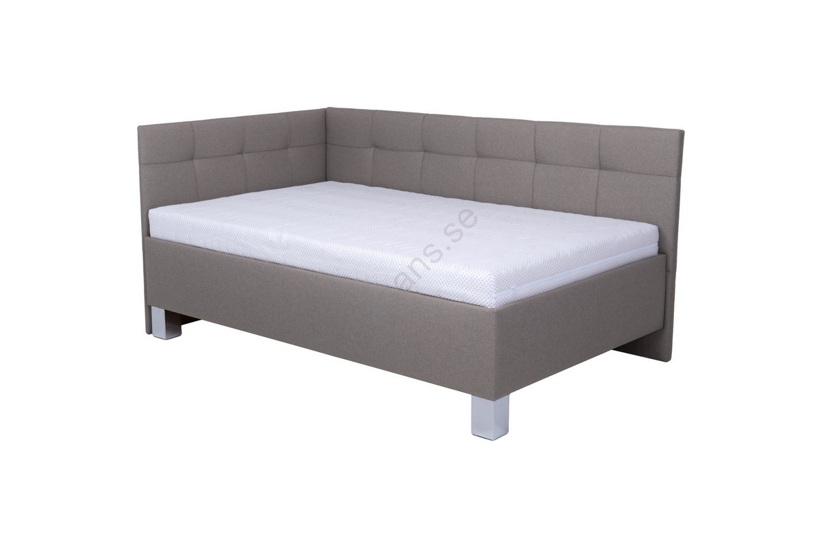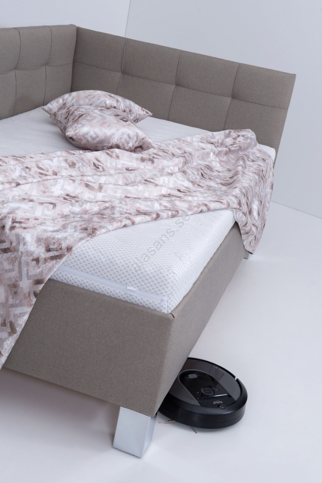 • Tygklädd säng MARIA PETITE 120x200 cm med madrass och förvaringsutrymme, taupe