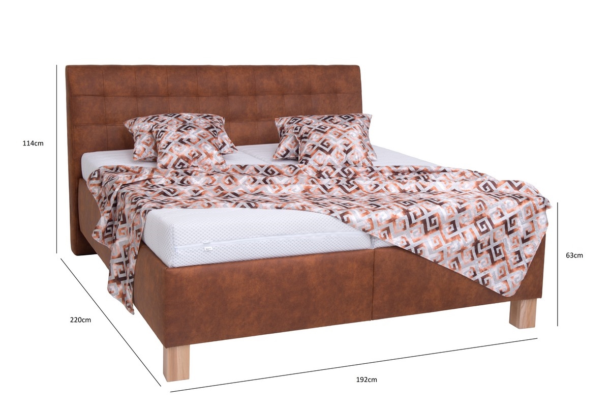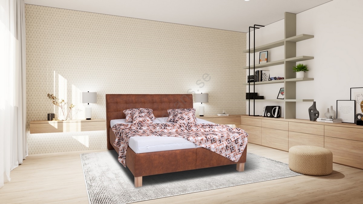 • Tygklädd säng VIOLET 180x200 cm med madrass och smart förvaring, kognacbrun