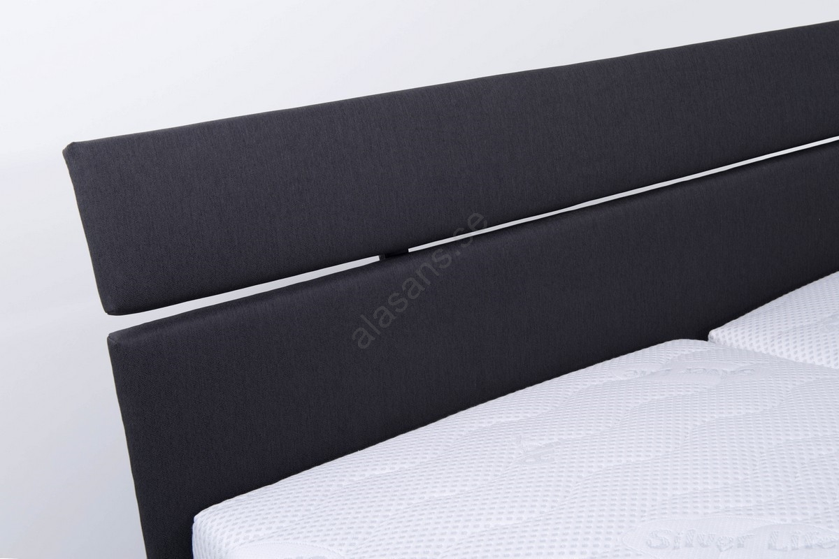 • Tygklädd dubbelsäng med lösa madrasser, erbjuder maximal komfort och praktiska funktioner för fulländad vila.