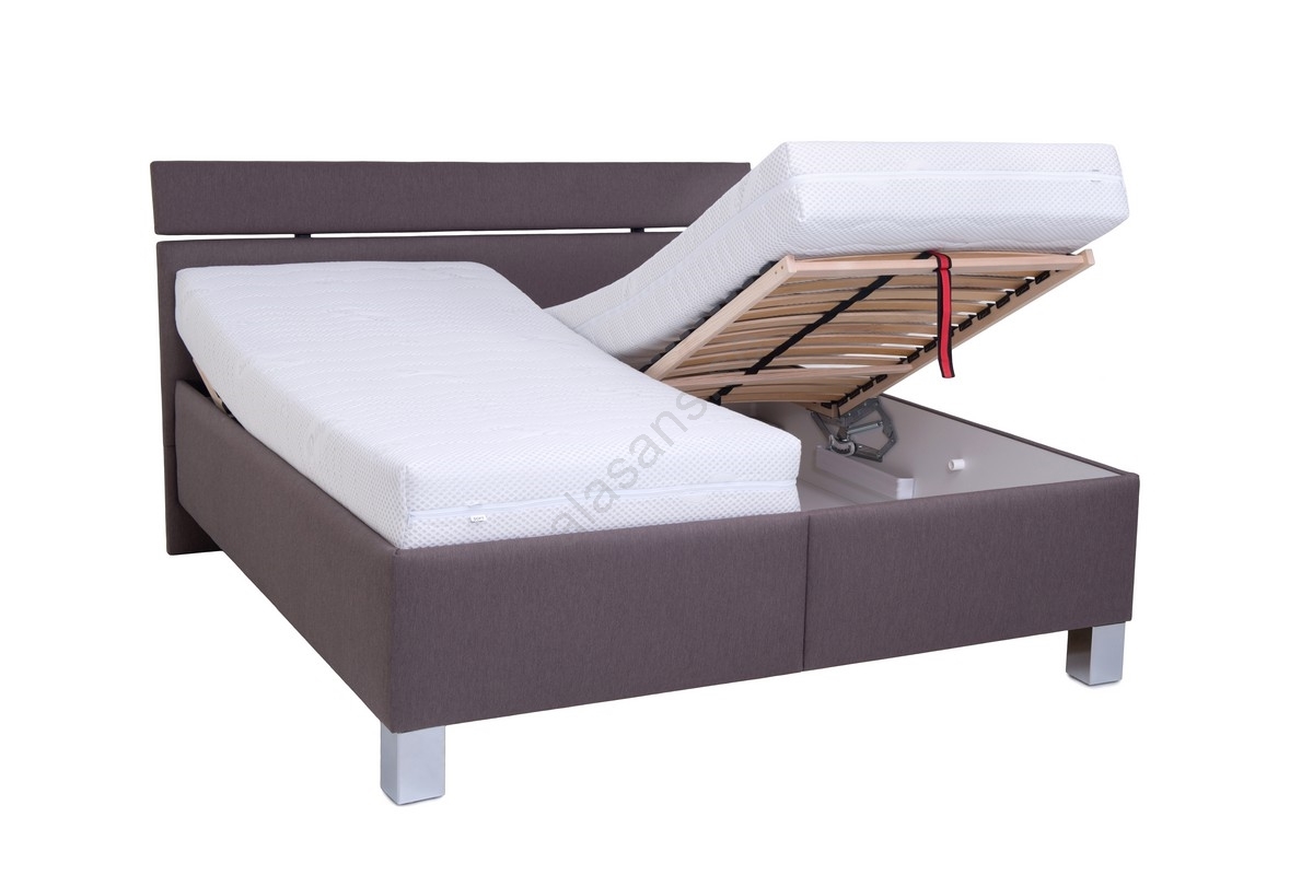 Tygklädd säng ALIS 180x200 cm med madrass och praktiskt förvaringsutrymme, brun | Alasans