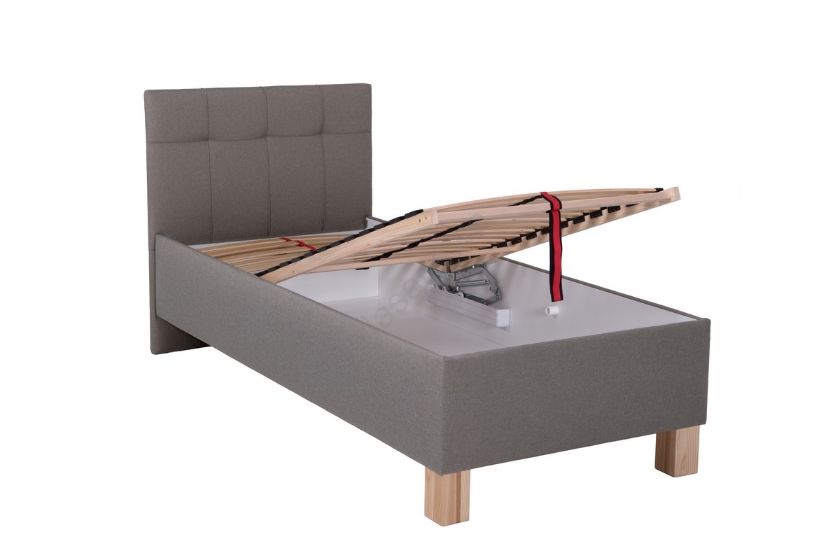 • Tygklädd säng med madrass och förvaringsutrymme MARIA ONE 90x200 cm grå