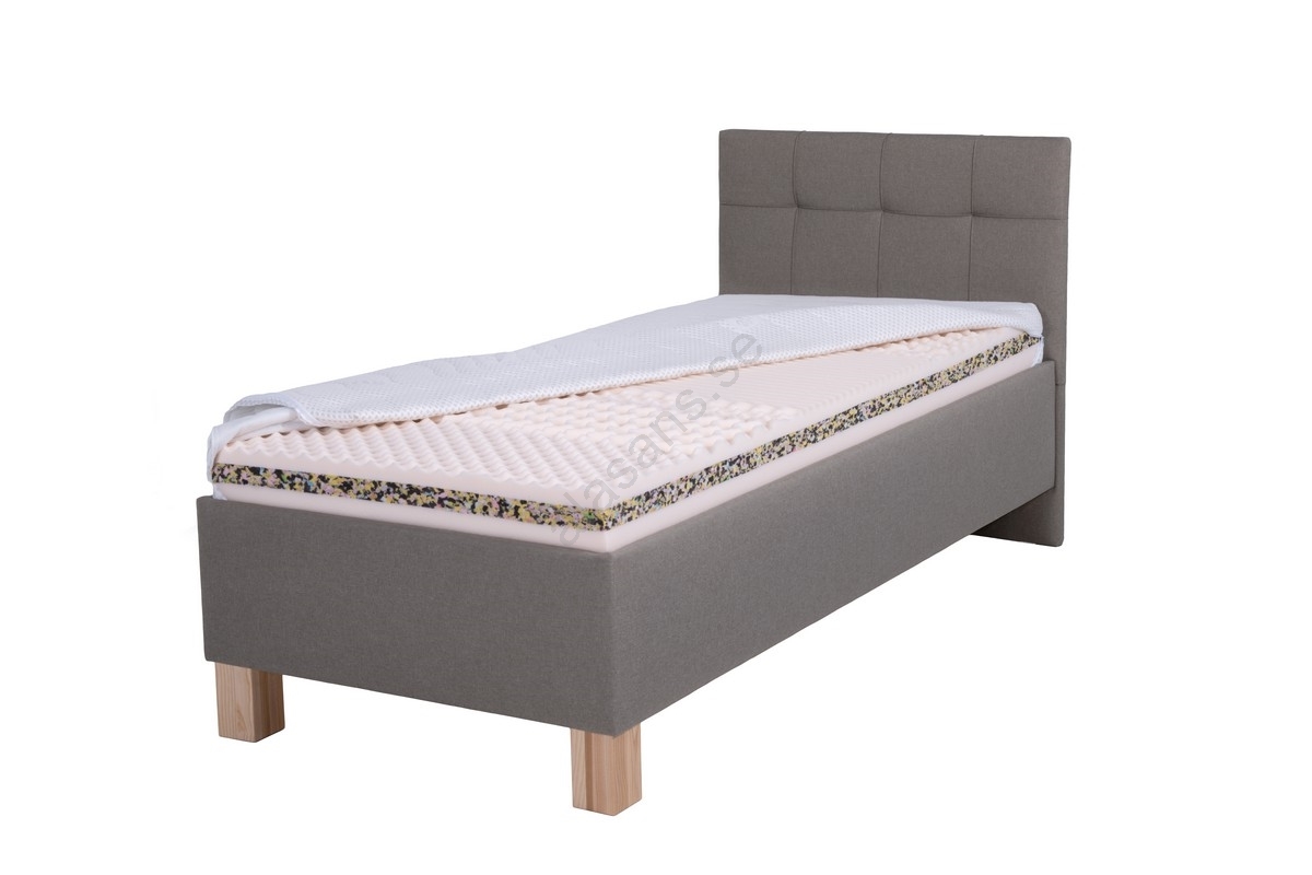 • Tygklädd säng med madrass och förvaring MARIA ONE 90x200 cm, brun