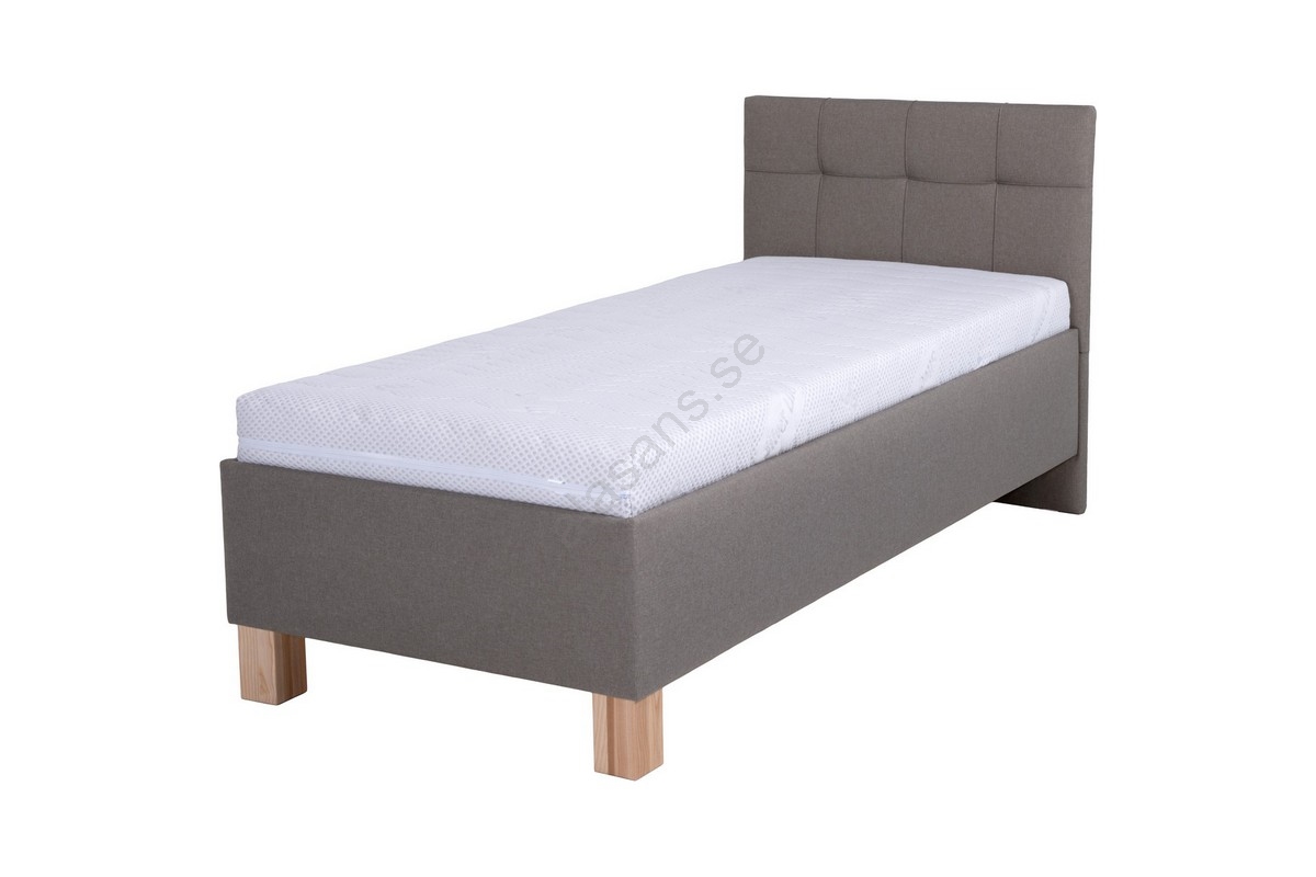 • MARIA ONE — tygklädd säng med förvaring, 90x200 cm, utan madrass, grå