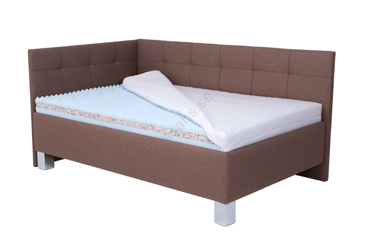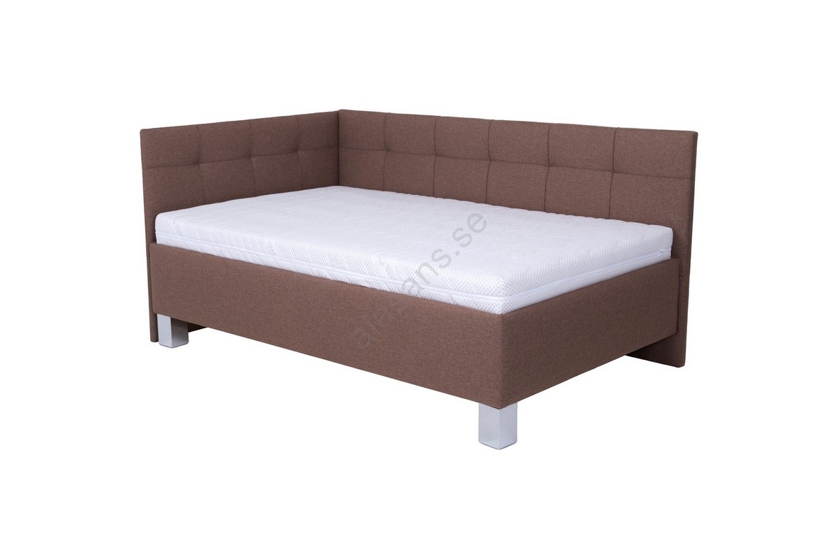 Tygklädd säng med madrass och förvaring MARIA PETITE 120x200 cm brun | Alasans