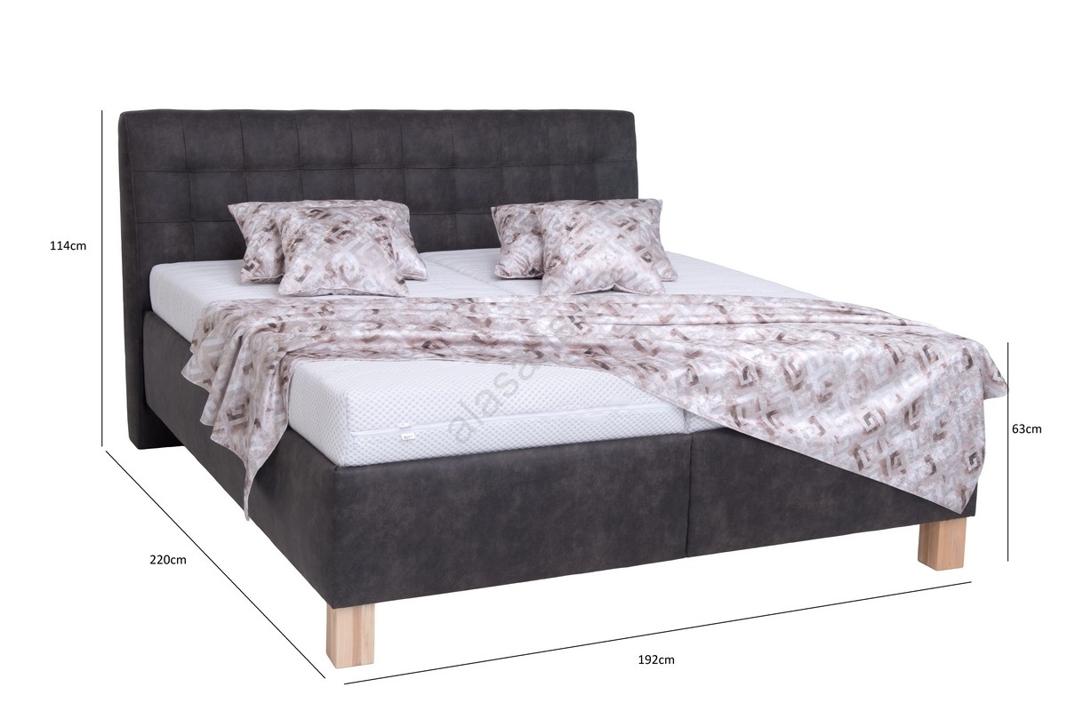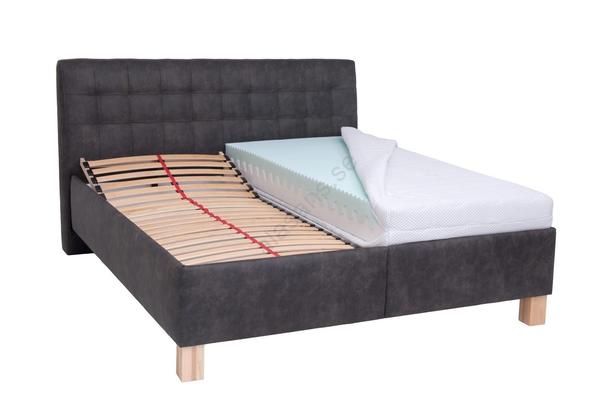 Tygklädd säng med madrass och förvaringsutrymme VIOLET 180x200 cm mörkgrå | Alasans