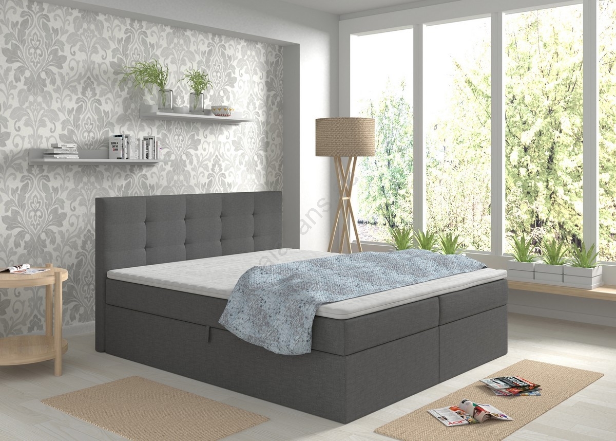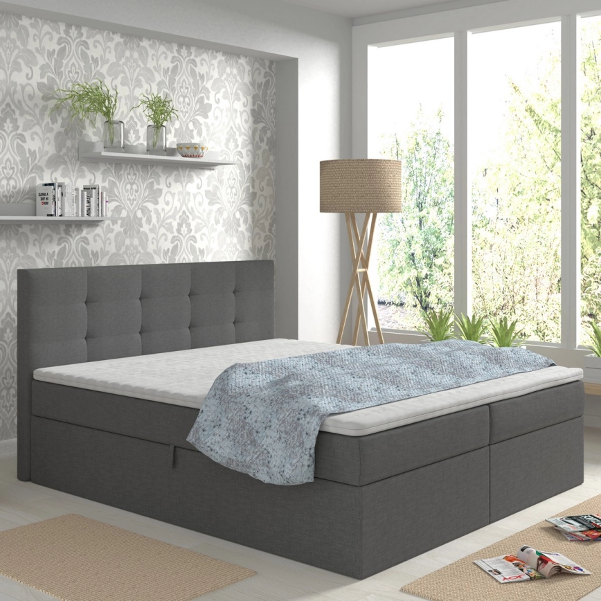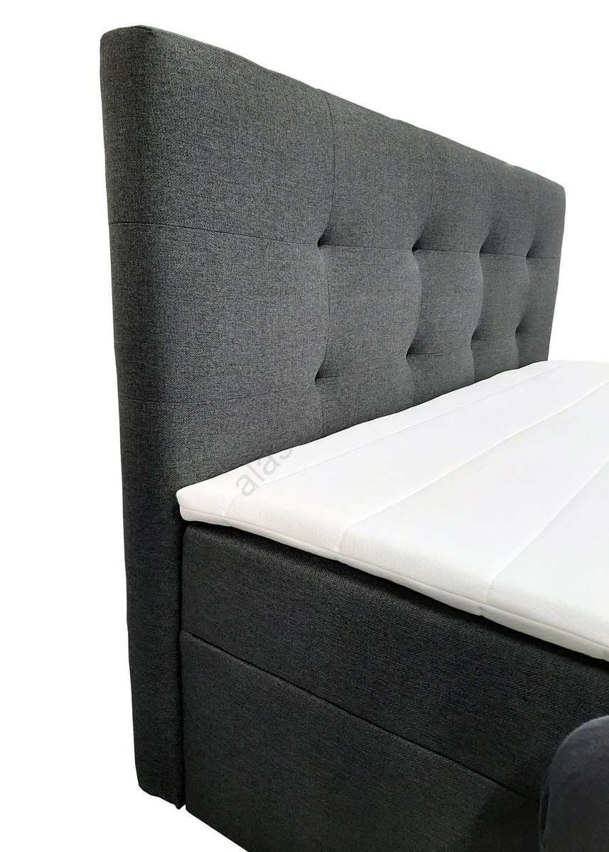 • Tygklädd säng EMBER 180x200 cm med madrasser, toppmadrass och förvaringsutrymme, antracit