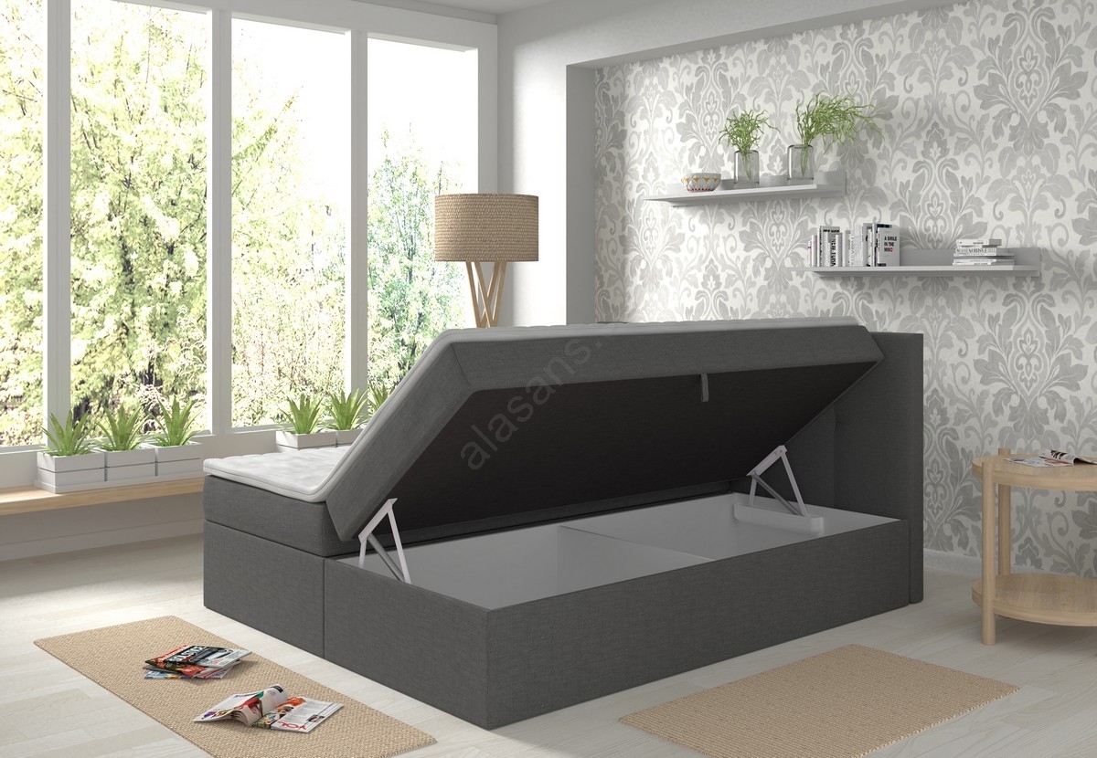 Tygklädd säng EMBER 180x200 cm med madrasser och bäddmadrass samt förvaringsutrymme, antracit | Alas