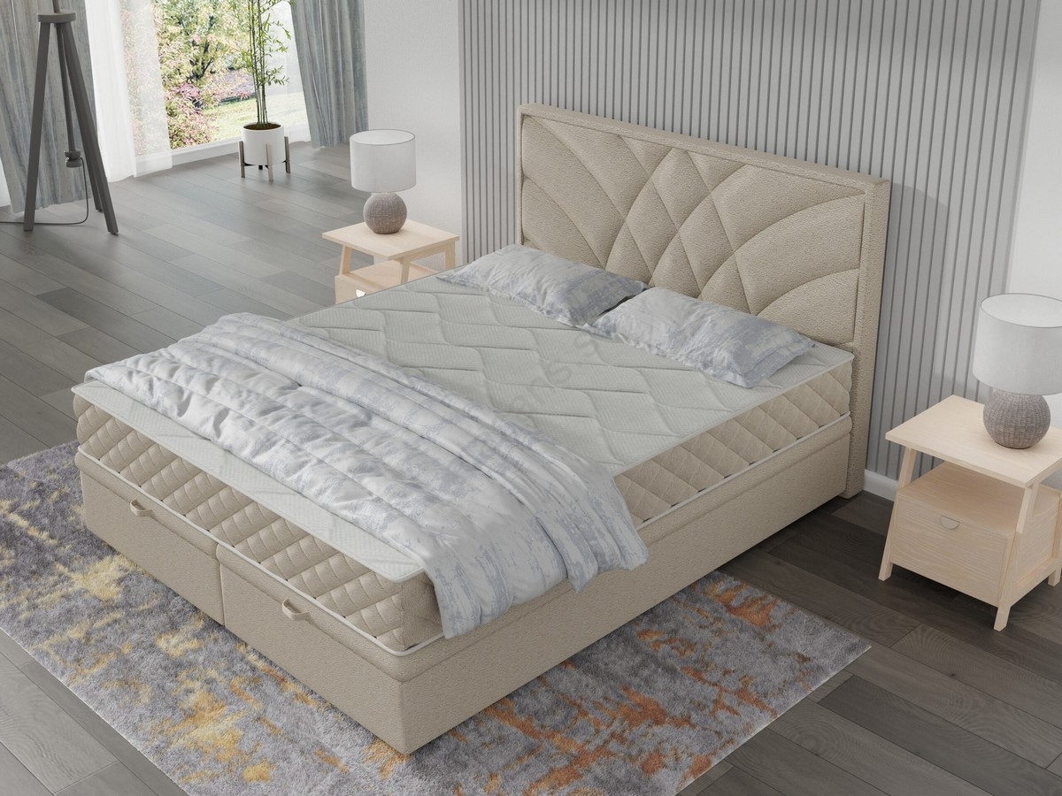 Stoppad säng GINA 160x200 cm med inkluderade madrasser och rymligt förvaringsutrymme, beige