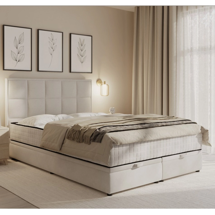 Tygklädd säng med madrasser och förvaringsutrymme GRACE 160x200 cm beige | Alasans