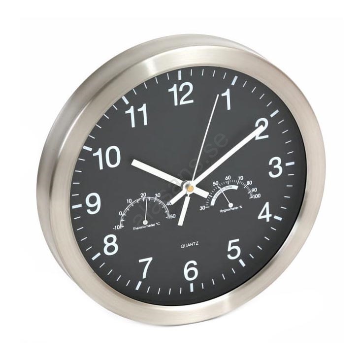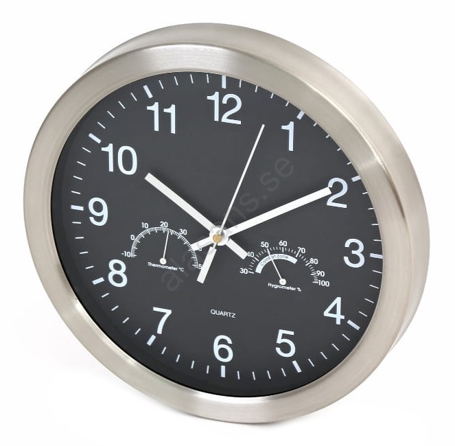 Väggklocka med termometer och fuktmätare 1xAA svart | Alasans