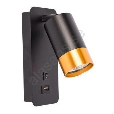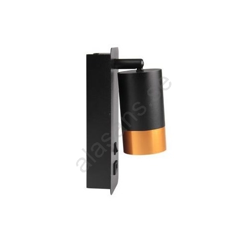 Väggspotlight med USB-laddare 1xGU10/35W/230V svart/guld | Alasans