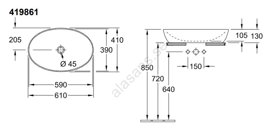 Villeroy & Boch 41986101 - Tvättställ för bänkskiva ARTIS 61x41 cm keramik/vit | Alasans