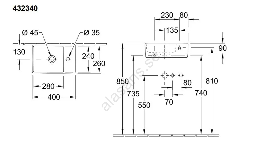 Villeroy & Boch 43234001 - Vägghängt tvättställ MEMENTO 40x26 cm keramik/vit | Alasans