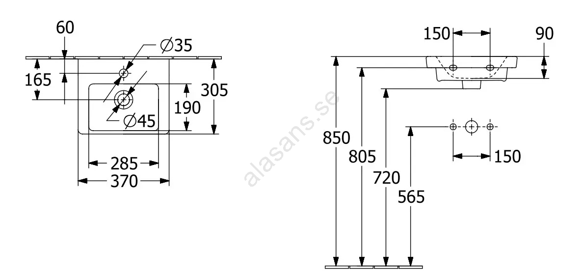 Villeroy & Boch 43703701 - Väggmonterat tvättställ SUBWAY 37x30,5 cm keramik/vit | Alasans