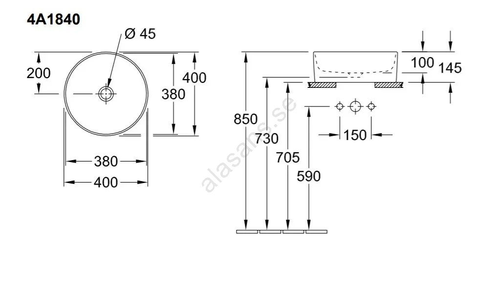 Villeroy & Boch 4A1840R1 - COLLARO tvättställ för bänkskiva Ø 40 cm, keramik, vit | Alasans