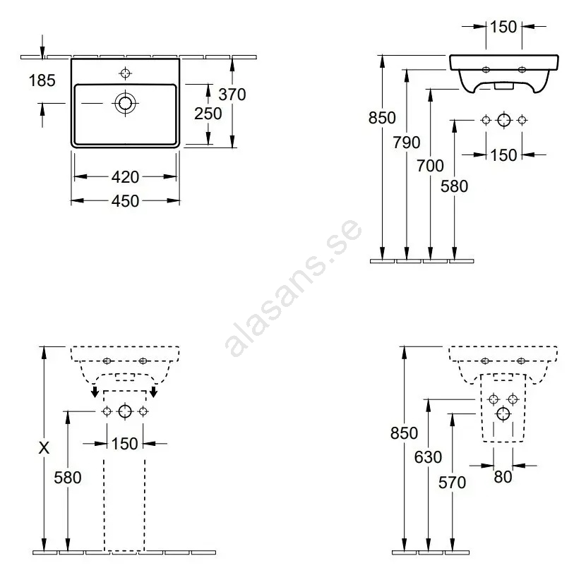 Villeroy & Boch 73584501 - Vägghängt tvättställ AVENTO 45x37 cm keramik/vit | Alasans