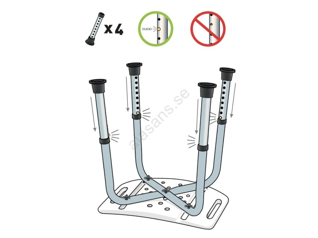 • Säkerheten förbättras av gummifötter som förhindrar att sitsen glider.