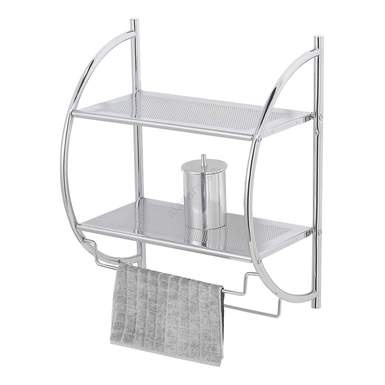 • Elegant väggmonterat ställ med två hyllplan för praktisk förvaring.
