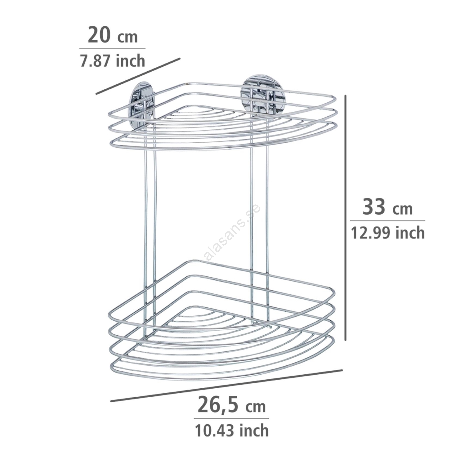 WENKO 18914100 - Hörnhylla TURBO-LOC RUND STÅL 26,5 x 33 cm polerad krom | Alasans