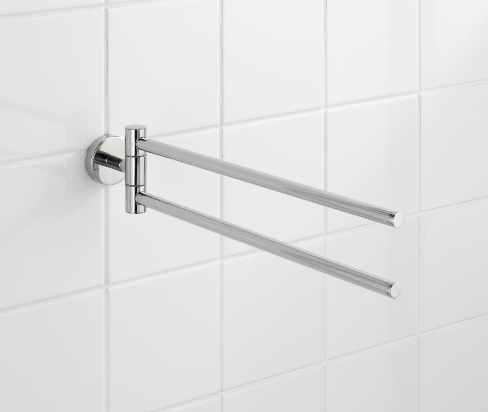 • Kompakt design sparar plats samtidigt som den erbjuder gott om utrymme för två handdukar.