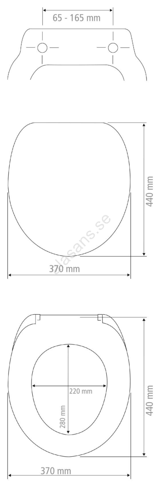• Mått på lock och sits 37 x 44 cm – passar de flesta standardtoaletter.