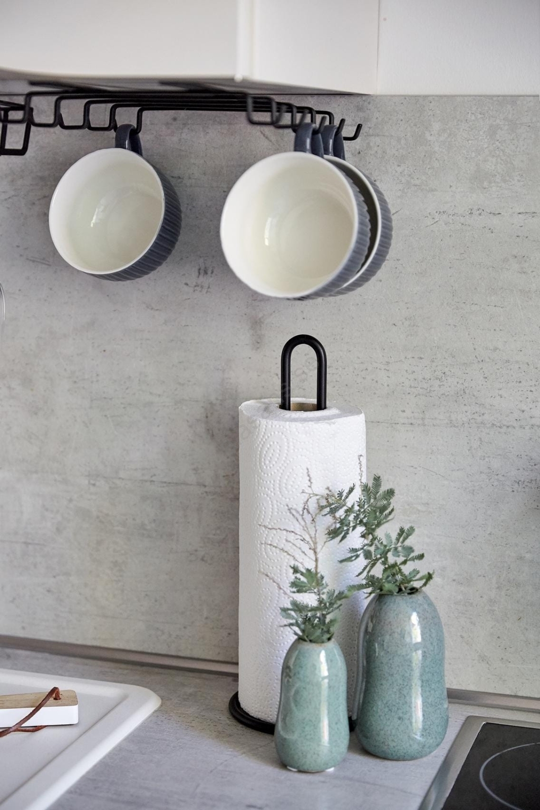 • Håller hushållspapper nära till hands och prydligt organiserat.