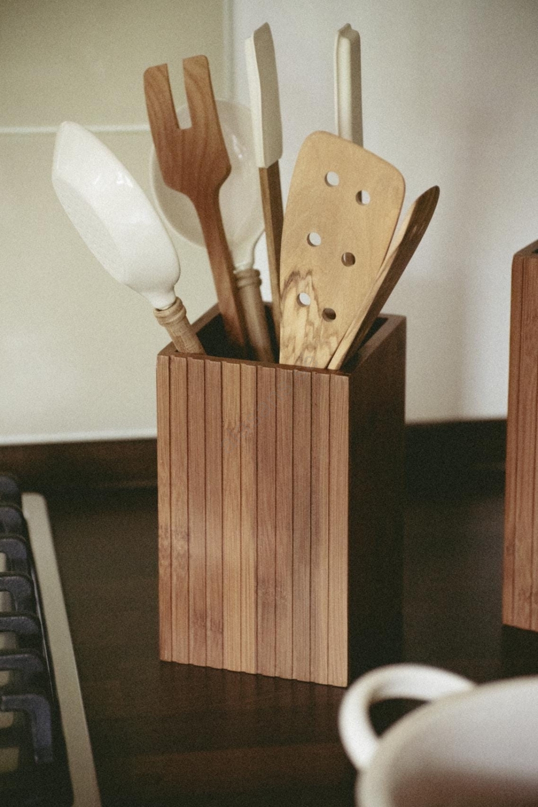 • Tillverkad av högkvalitativ rökbrun bambu med en modern räfflad struktur.