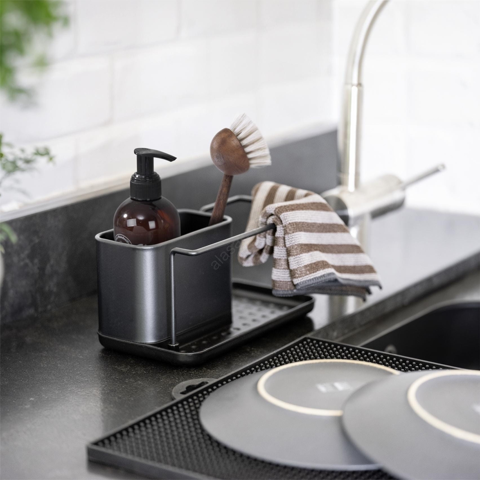 • Avtagbar behållare i rostfritt stål – perfekt för svampar och diskborstar.