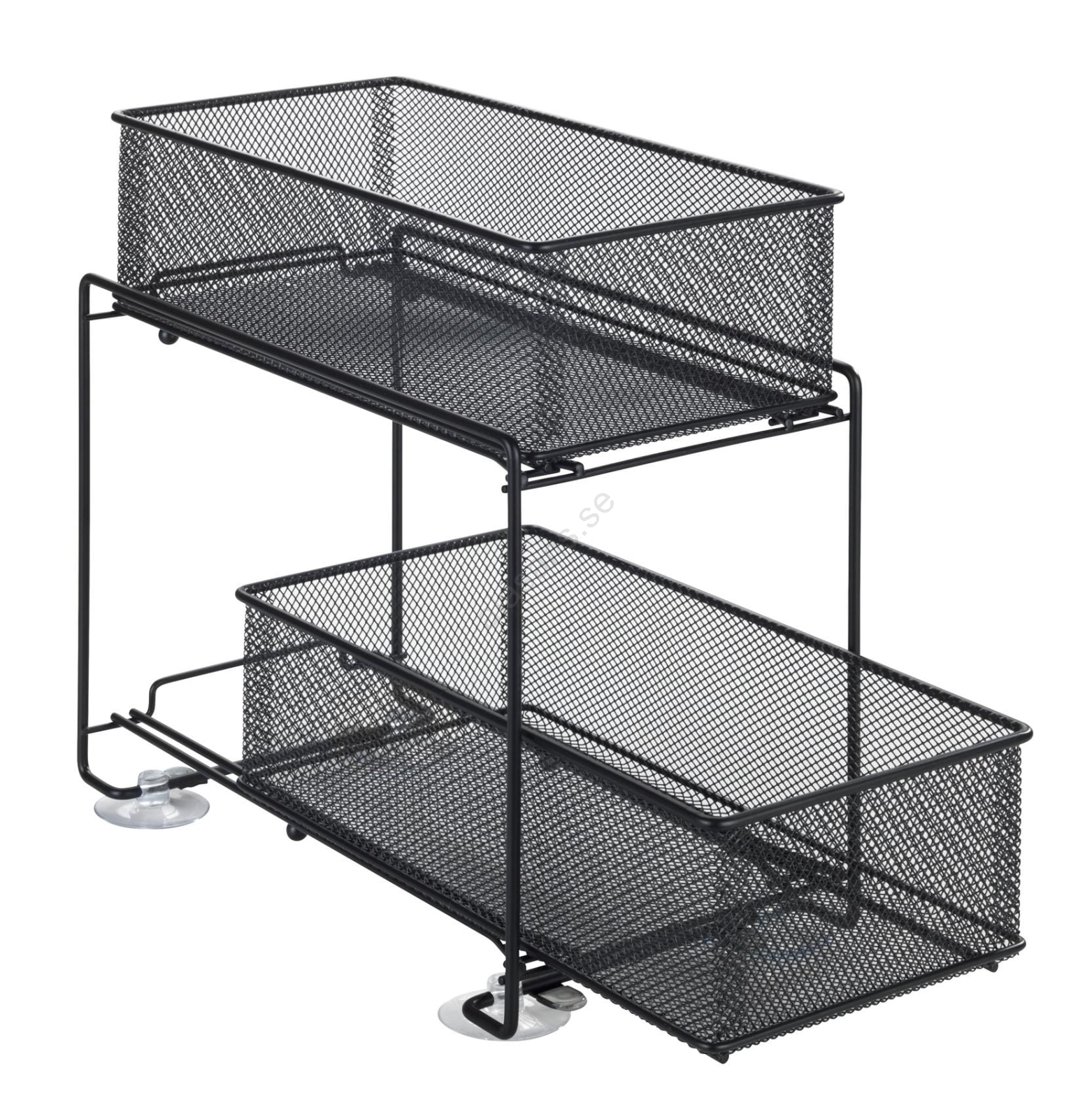 • Praktisk organiserare med två utdragbara hyllplan som skapar ordning i kök och badrum.