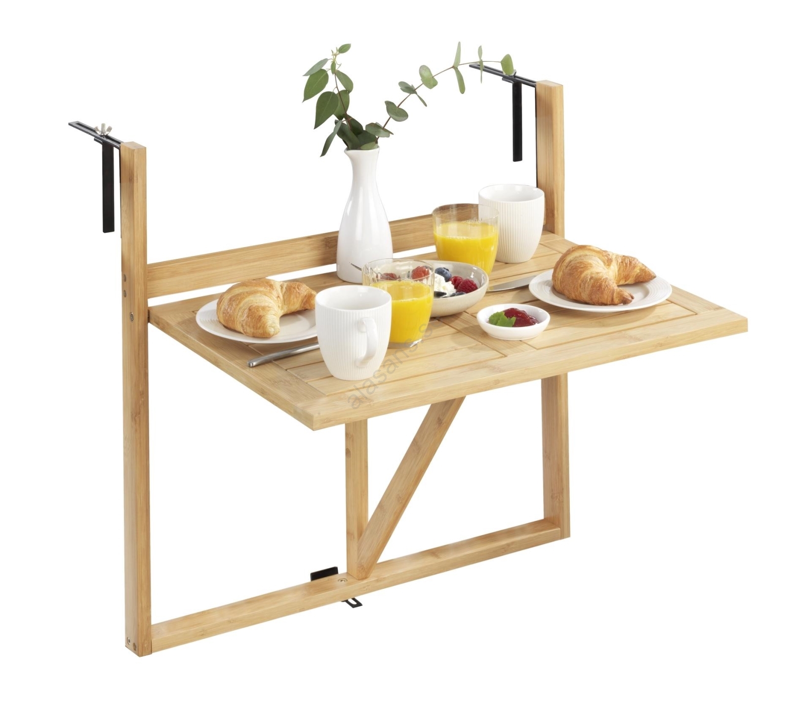 • Hopfällbart balkongbord i naturlig bambu.