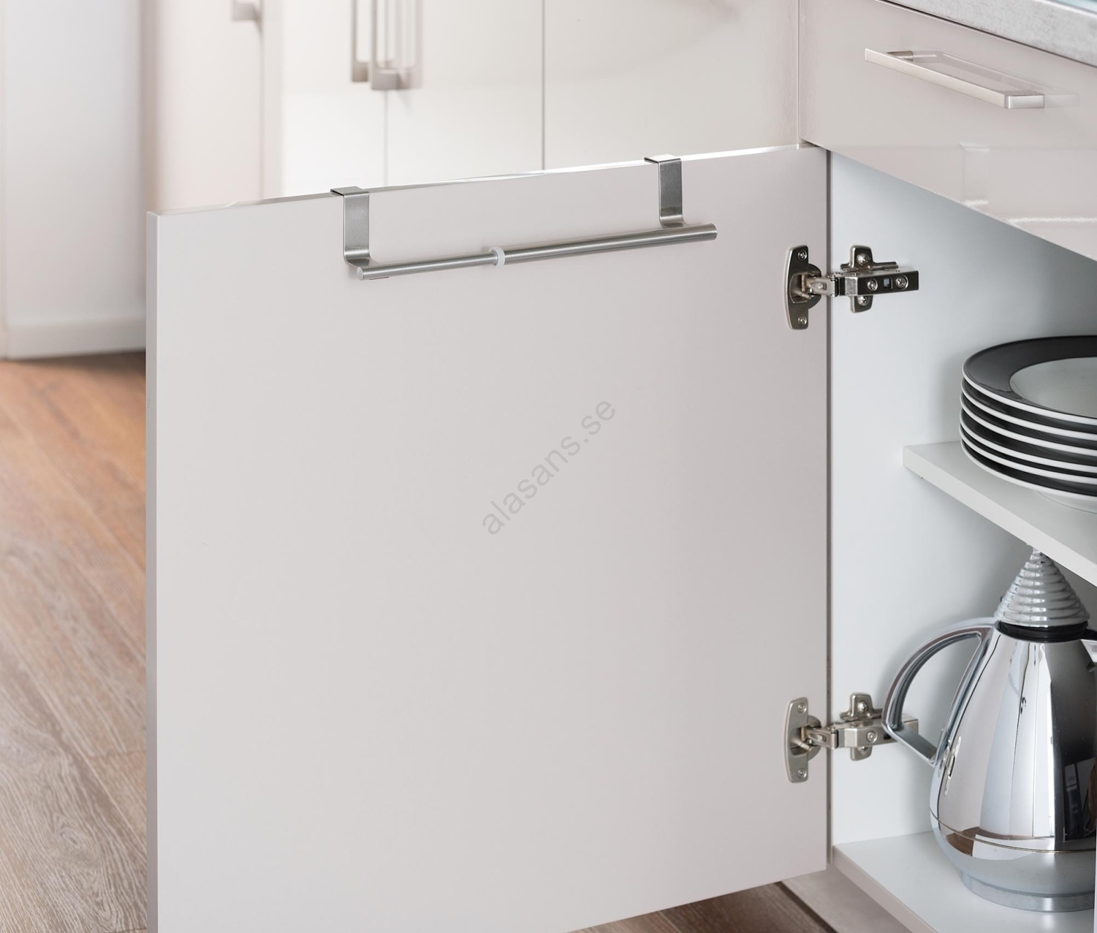 • Gummibelagda skyddspads skyddar ytor och förhindrar repor på dörrar.