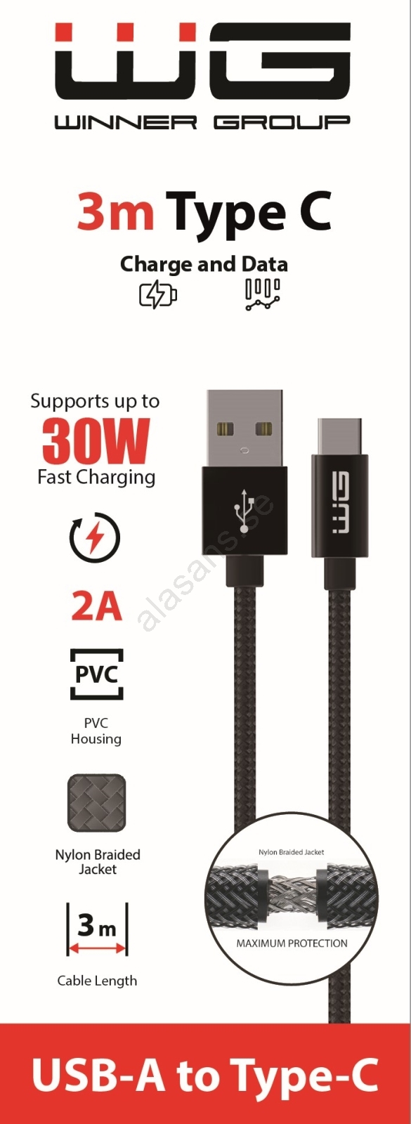 Winner Group - USB-kabel USB-C / USB-A 30W 3 m svart | Alasans