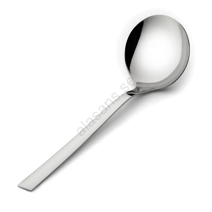 • Den har en rundad skopa som gör det möjligt att fylla tallrikar, terriner och koppar säkert utan spill.