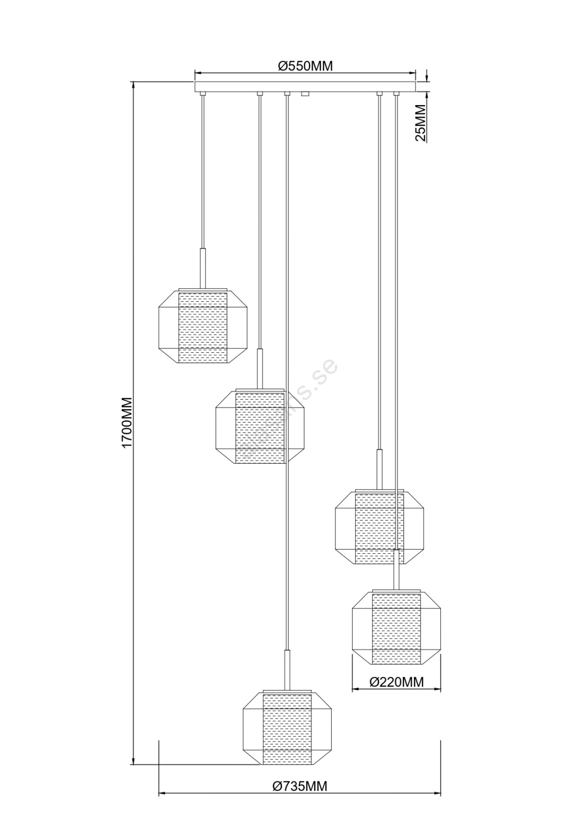 Zuma Line - Taklampa på vajer 5xE27/25W/230V Ø 73 cm guld/svart kännetecknar snygg och funktionell design. En glödlampa med E27 lock är lämplig för lampan. Här kan du köpa andra glödlampor till förmånliga priser. Du kommer att få ett intressant tillägg till ditt hem.